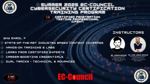 | Fee Options | Option 1: Rs. 40,000 (SS CASE IT Certificate + Official Training) Option 2: Rs. 40,000 + 420 USD (EC-Council Training + Exam Voucher + E-Book + iLabs Access) |