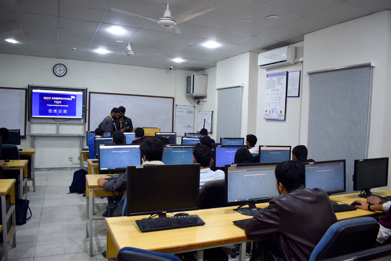 The Computer Science Department successfully organized a Quiz Competition aimed at promoting academic excellence and healthy competition among students. The competition was conducted on a course-wise basis, allowing students from different programs and semesters to showcase their knowledge and problem-solving skills within their respective disciplines.