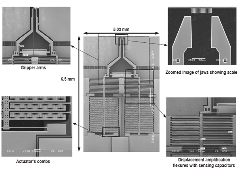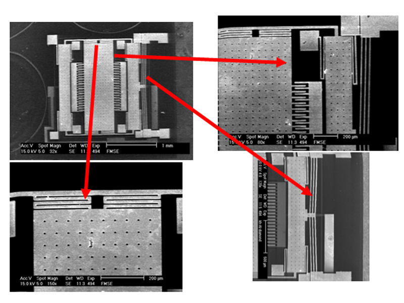 Scanning Electron Microscope pictures of Thermal Micro-Gyroscope developed at CASE [8] Fahimullah Khan , S.A Bazaz, Muhammad Sohail ” Design and implementation of Electrostatic SOI-MUMPs microgripper” Journal of Microsystem Technologies.